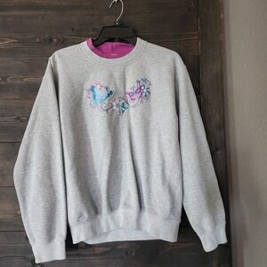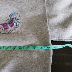 VintageY2K Embroidered Butterfly Gray Double Crewneck Womens Size Small Girlie