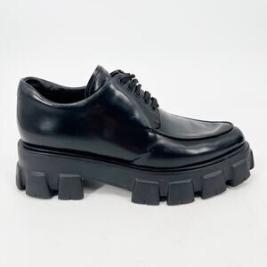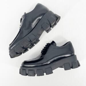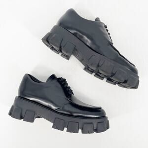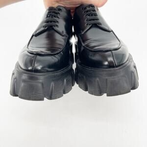 Prada Black Brushed Leather Lace Up Chunky Monolith Derby Oxford Loafer IT 39