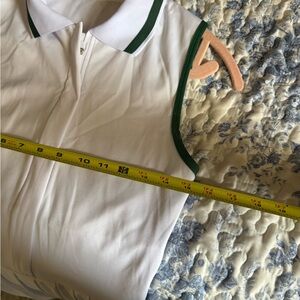 Stay stylish on the court with this elegant white tennis dress featuring a chic green trim. Perfect for active days, this dress combines comfort and fashion effortlessly. Built in bra . New without tags