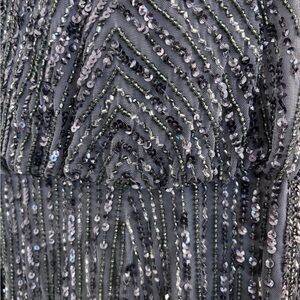 Floor length black tie gown with beadwork and sequins. Worn once.