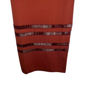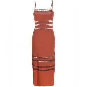 NEW NWT Cult Gaia Olitan Embellished Midi Dress In Tannin is such a stunning piece! This rust color stretchy knit dress features sheer panels with intricate beadwork. Spaghetti straps. 60% viscose, 40% nylon