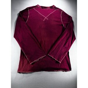 The POL Thermal Top is a women's red long sleeve base layer with contrast stitching and a Henley neckline. Made from a cotton blend knit fabric, this relaxed fit top is machine washable and features a solid pattern with a cozy thermal design. Ideal for outdoor activities, this T-shirt from the brand POL is designed for comfort and warmth, making it a stylish and functional addition to any wardrobe.
