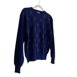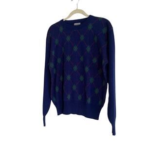Vintage 90s City Streets Blue Green Argyle Knit Crew Neck Preppy Sweater Medium