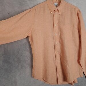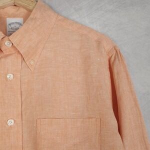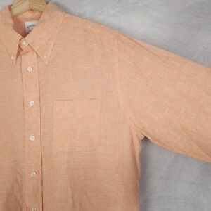 Brooks Brothers Shirt Mens Large Orange Irish Linen Button Down Long Sleeve