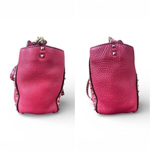 Valentino Garavani Rockstud two way ba crafted in richly textured pebbled calfskin leather in the striking ORO colorway (a deep raspberry/wine tone), finished with signature pyramid studs.