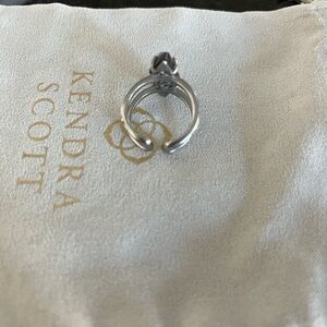 Stylish adjustable silver ring by Kendra Scott. Features a bold black drusy stone. Ideal for adding elegance.