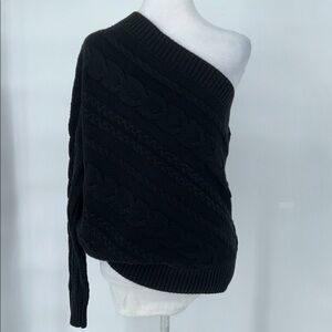 L'AGENCE Zoey Cable Knit Merino Wool one shoulder black sweater size Large