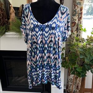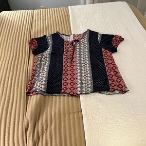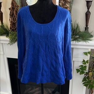 Beautiful pale pink v-neck top with long unlined sleeves and elastic wrist. The top is lined with dyed to match fabric. The fabric is a really cool feathery look. Loose fitting. Would be an amazing top for Valentine’s Day! ❤️