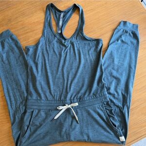 Vuori jumpsuit, size XS, heather teal color. Jogger style, waistband tie. Racer back.