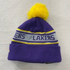 Los Angeles Lakers NBA Basketball New Era Knit Purple Pom Pom Hat Cap Beanie NW