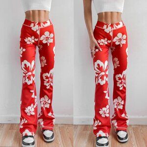 Urban Outfitters Womens XS Tropical High Waist Flare Pants Boho Festival Style