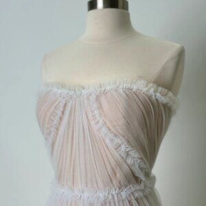 Immerse yourself in the elegance of the Anna Augusta Evening Maxi Dress, a brand-new masterpiece designed to make any occasion unforgettable. This stunning gown features a classic white color with a delicate nude lining, perfect for weddings, formal events, or elegant social gatherings. The Anna Augusta Evening Maxi Dress exudes sophistication with its pristine white fabric complemented by a subtle nude lining. The dress's clean, flowing lines and floor-length silhouette enhance its graceful appearance, making it a standout choice for any upscale event. Designed in Size 4, this gown fits beautifully, providing both comfort and style. This Anna Augusta Evening Maxi Dress is not just a dress; it's a statement of grace and elegance, ready to make you the center of attention at your next formal occasion.