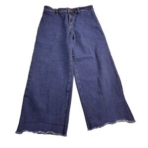 ANNIEWEAR Los Angeles Wide Leg Cropped Jeans Distressed Frayed Hem XL