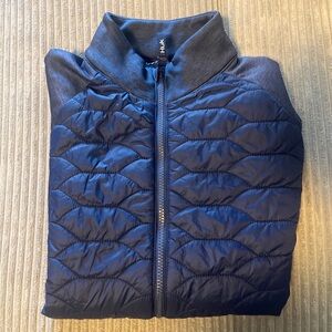 Experience warmth with this stylish dark blue puffer. Ideal for cool weather.