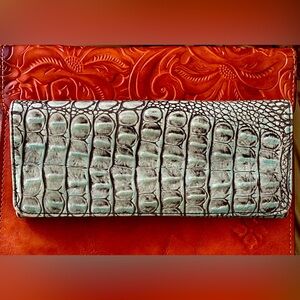 Juan Antonio Handmade Elegant Crocodile Embossed Leather Clutch Wallet 9 x4 NWOT