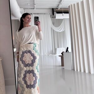 One of a kind handmade maxi skirt upcycled from a quilt made by the company SHAPEAU. Adjustable button waistband to fit any size 2-14