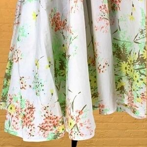 A flattering flared skirt with crisscross-back straps and sash tie deliver a pretty finish on this lightweight printed cotton dress from Free People.