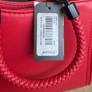 Badgley Mischka with Braided Handles, black metal handware, crossbody strap in red vegan leather. $129 retail. NWT