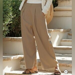 Tags minimalist aesthetic neutral versatile timeless capsule wardrobe classic classy style chic staple luxury quiet luxury silk natural sustainable tan light brown khaki sand nutmeg fall winter spring summer workwear office business casual pleated pleats high rise high waisted loose fit relaxed baggy wide leg pants