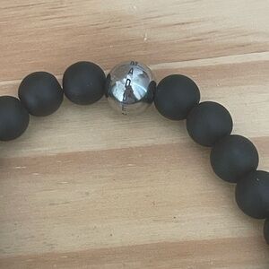 Elegant Steve Madden black beaded bracelet. Features a silver Hamsa charm. Stylish and modern design.