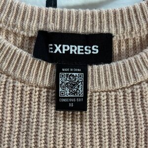 Chic Express ribbed knit sweater from the Conscious Edit collection. Features feminine puff sleeves, a flattering fitted silhouette, and a soft neutral blush/nude tone that pairs perfectly with jeans, trousers, or skirts.
