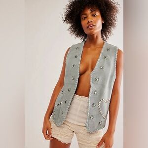 Understated Leather Pearl Blue Suede Western Studded Vest Size XS free people