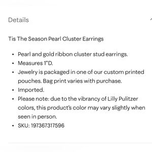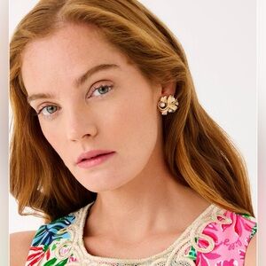 Chic Lilly Pulitzer earrings with pearl clusters and gold-tone ribbon design. Perfect for any occasion. Includes dust bag.