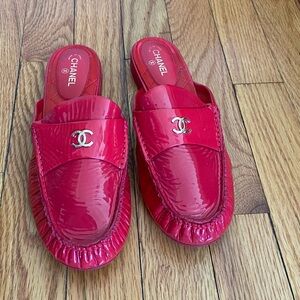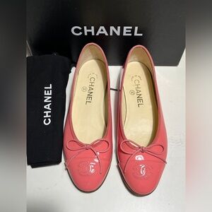 Chic CHANEL flats in light pink. Quilted design with signature logo. Adds elegance to any look.