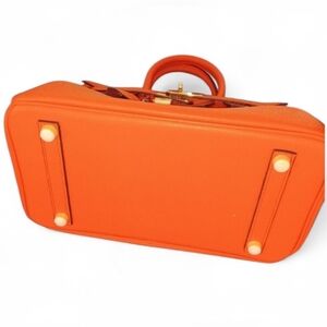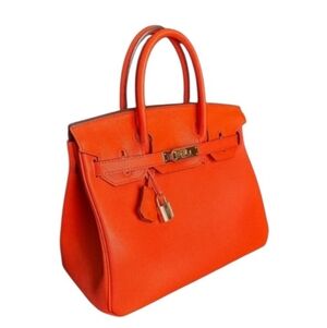 This is a gorgeous Starburst Orange/Feu tote in the model size 30. It has gold hardware with the matching gold lock & key, firm and durable leather. Definitely the perfect color for summer or spring.