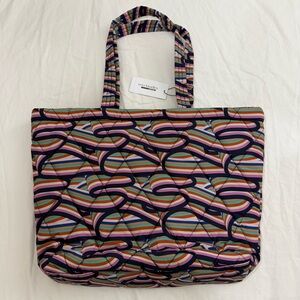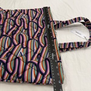 Lightweight and stylish tote perfect for everyday use, travel, errands, or casual outings. Features the colorful Retro Ribbons pattern that’s classic Vera Bradley — easy to clean, roomy enough for your essentials, and comfortable to carry.