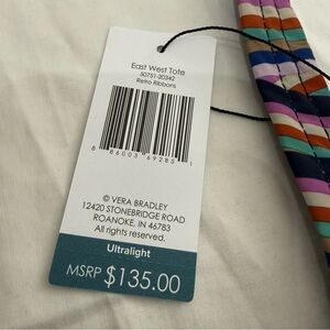Vera Bradley Large Retro Ribbons Ultralight East West Tote Preppy Travel NWT