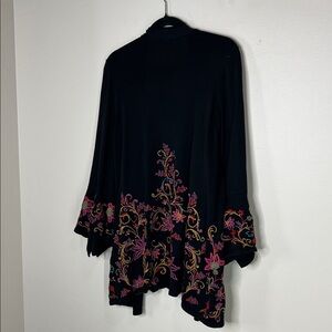 Chico's Romantic Boho Floral Embroidered Flare Cuff Black Cardigan size Medium
