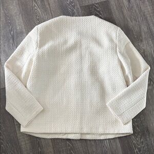 This elegant whitr jacket offers a sophisticated look with its textured design. Perfect for any occasion, it combines style and comfort effortlessly.