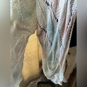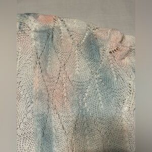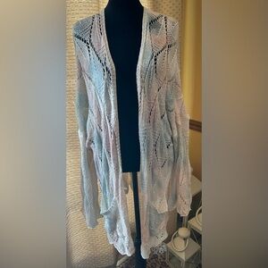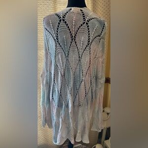 Pre owned. Good condition. Signs of use shown in pictures. Needs light TLC. Elegant open-front cardigan. Soft pastel hues. Perfect for layering.