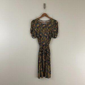 Boden Knot Detail Jersey Mini Dress in Harvest Gold Paisley Floral Size 6