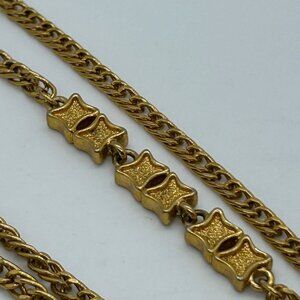 A classic Monet design with gold-tone multi-strand chains and textured star links. At 54", this vintage piece adds timeless elegance to your collection.