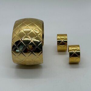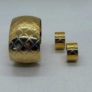 Quilted Gold-Tone Cuff Bracelet & Earrings Set Vintage Style Jewelry
