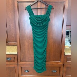 Pretty Garden Green Off-Shoulder Ruched Dress