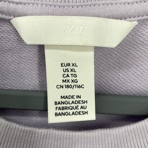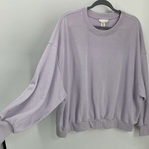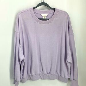 Very nice sweatshirt by H&M in women’s size XL. Pit to pit measures 28 inches, length is 25 inches. Dolman sleeves, soft lavender color. I’m good preowned condition. Please see pictures and contact me with questions.