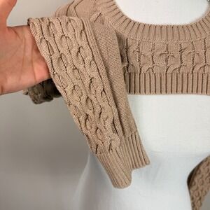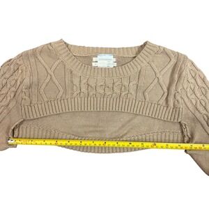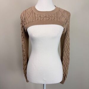 Anthropologie Cable Knit Cropped Sweater Bolero Arms Tan XS