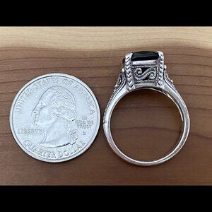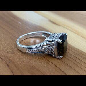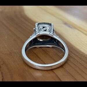 Beautiful cushion cut Smoky Quartz set in a 925 Sterling Silver Filigree casting. Ring size is an 8.