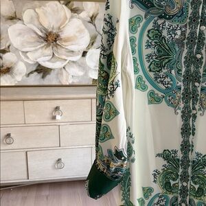 Step out in style with this elegant green paisley maxi dress. Perfect for any occasion, this dress combines comfort and sophistication.