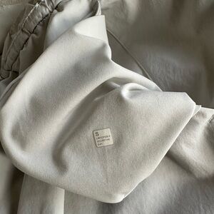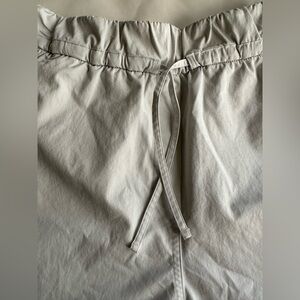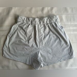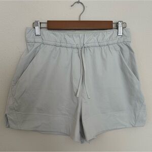 Original Lululemon athletic shorts, size S, in light gray. Comfortable design with an elastic waistband and adjustable drawstring, ideal for training, walking, traveling, or casual wear.