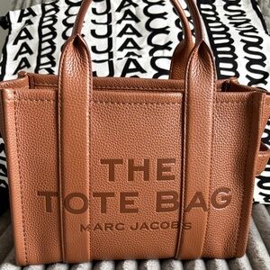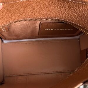 Stylish Marc Jacobs The Tote Bag small tote in argan oil leather. Perfect for everyday use. Features sturdy handles and spacious interior.