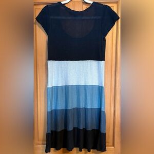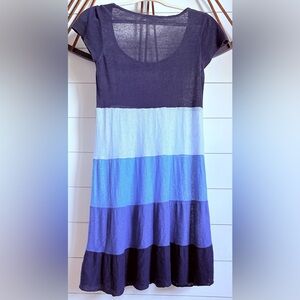 Boden Color-block A-line Stretchy Knit Linen Dress w Cap Sleeves n Blues & White