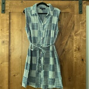 100% cotton. Size 14. BNWOT. New condition. Functional buttons from top to bottom. Collared dress. Subtle cap sleeve. Comes with tie belt. Coastal grandmother/grandaughter style. Blue and white.