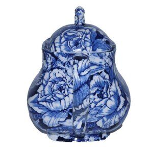 CHURCHILL Staffordshire England cobalt blue & white tea pot 7.5" tall with lid