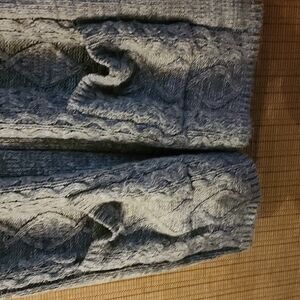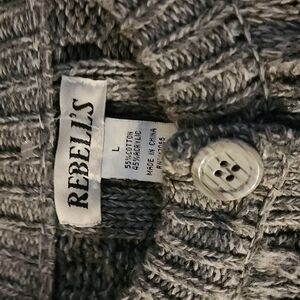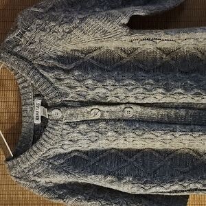 Pre-owned. This sweater is thick and heavy. It has two front pockets. Round neck and three buttons from the neck.
