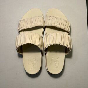 BOLD MOVES, an elegant two-strap slide with buttery soft full grain leather straps.