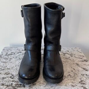 Worn 1-2 times. Excellent condition. Frye Company Natalie mid-lug engineer shearling lined boots. Size 8, but I wear an 8.5 and they fit me well. Very warm winter boot!